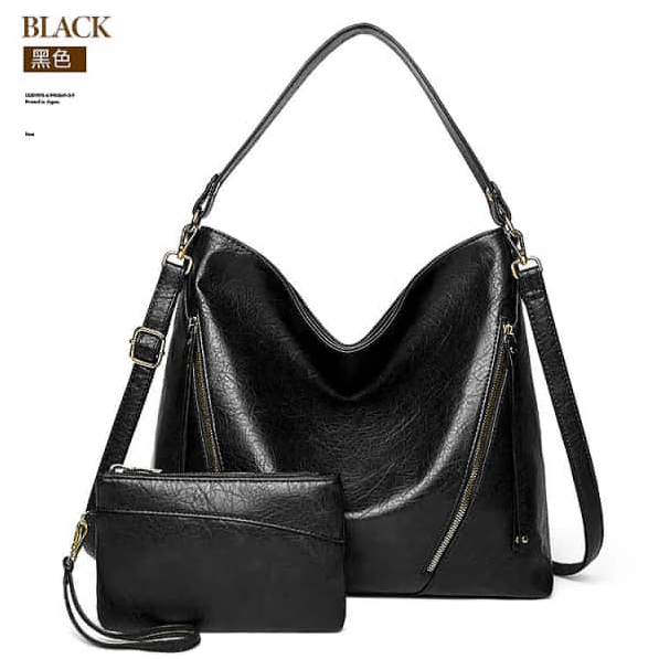 Come with 2 bags as the picture shows. Material: soft pu leather; the handles are reinforced and durable; zippers and lining are smooth.